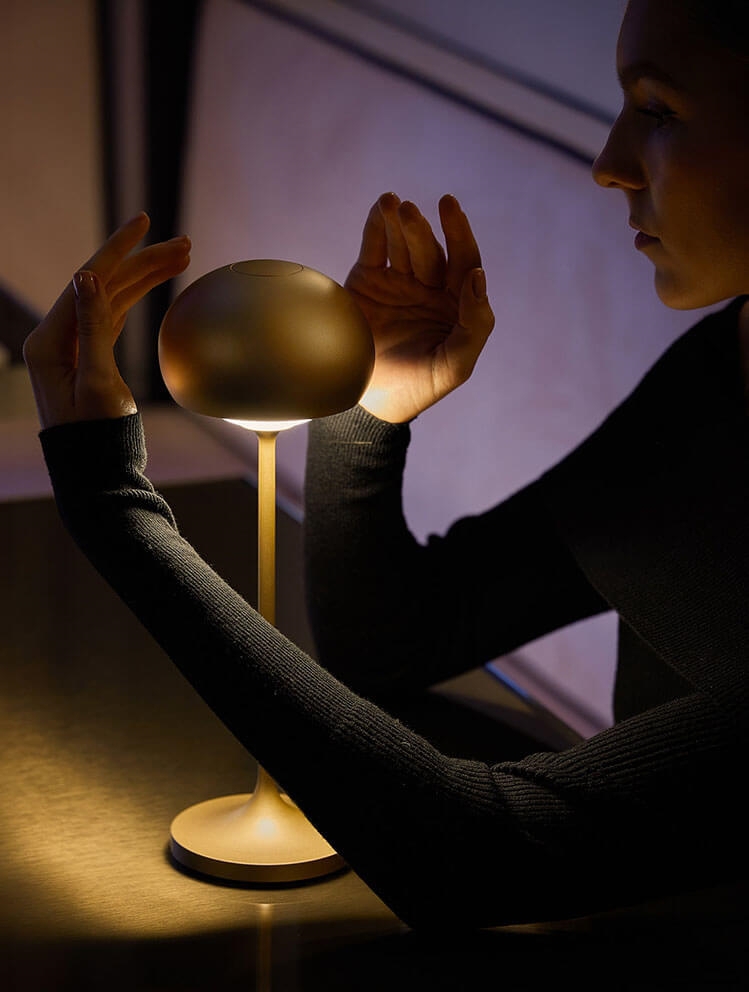 Przenośna lampa stołowa Clan Mini to połączenie futurystycznego designu i nowoczesnej technologii wykonanej z aluminium. Lampa bateryjna może być używana zarówno wewnątrz, jak i na zewnątrz, i może świecić z pełną mocą przez 9 godzin na jednym ładowaniu. Lampa jest ściemnialna i ma trzy zdefiniowane temperatury barwowe: 2200K, 2700K i 3000K, dzięki czemu można ustawić idealne oświetlenie na każdą okazję.