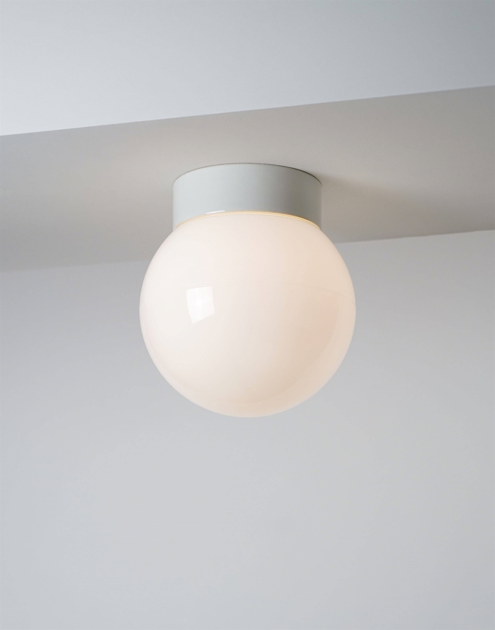 Classic Globe dostępna jest jako lampa ścienna lub lampa sufitowa w kilku wariantach z kloszem z błyszczącego lub matowego szkła opalowego.