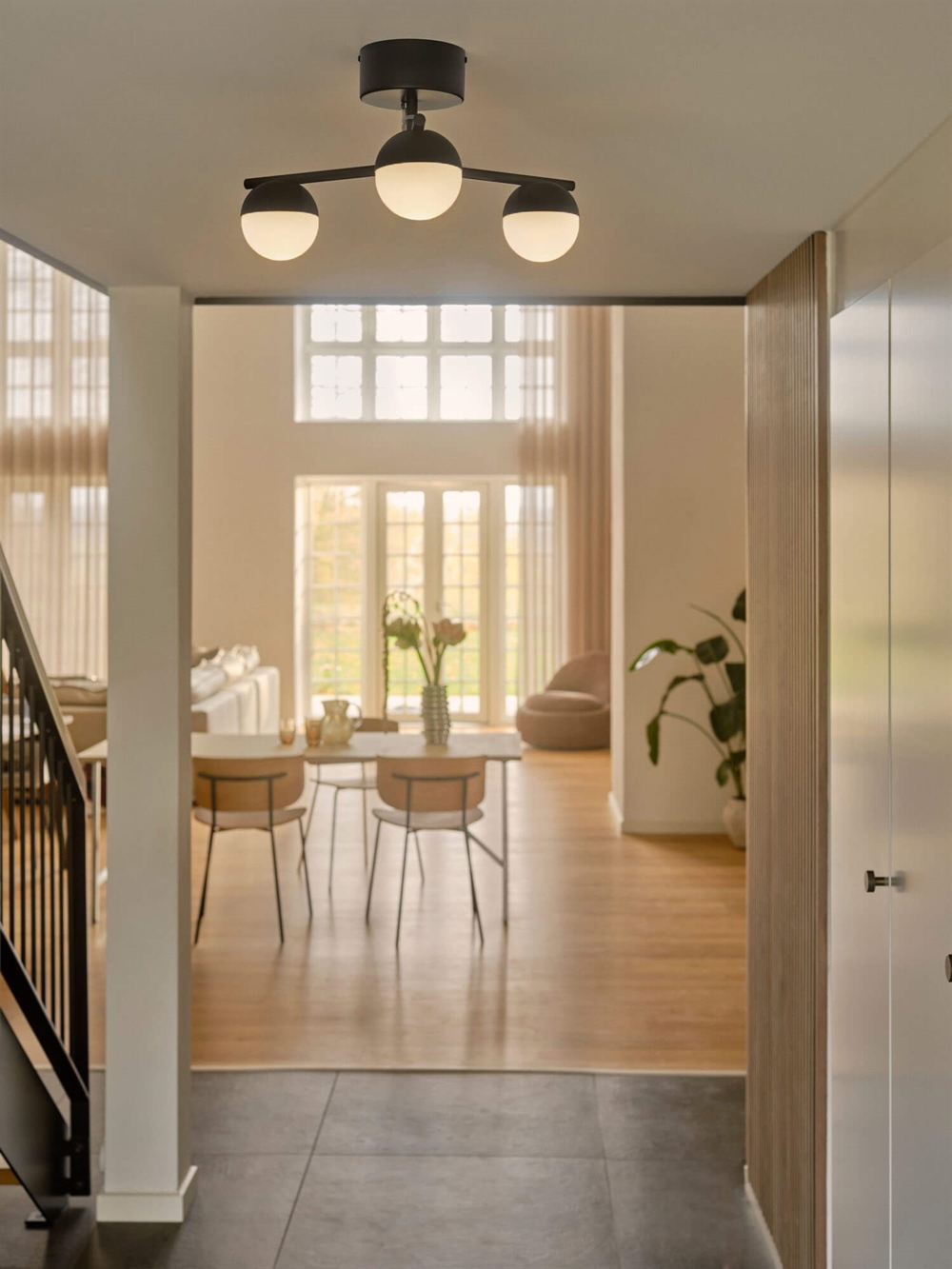 Lampa sufitowa Contina, dzięki swojemu smukłemu designowi i nieoślepiającemu światłu, jest idealna do przedpokoju lub sypialni. Kuliste matowe opalowe klosze szklane nadają lampie sufitowej elegancki wygląd w nowoczesnym stylu art deco. Każdy klosz jest dmuchany ręcznie, dlatego mogą występować pęcherzyki powietrza w szkle, które również mogą różnić się grubością. Proces produkcji nadaje szkle charakter i żywy wygląd.