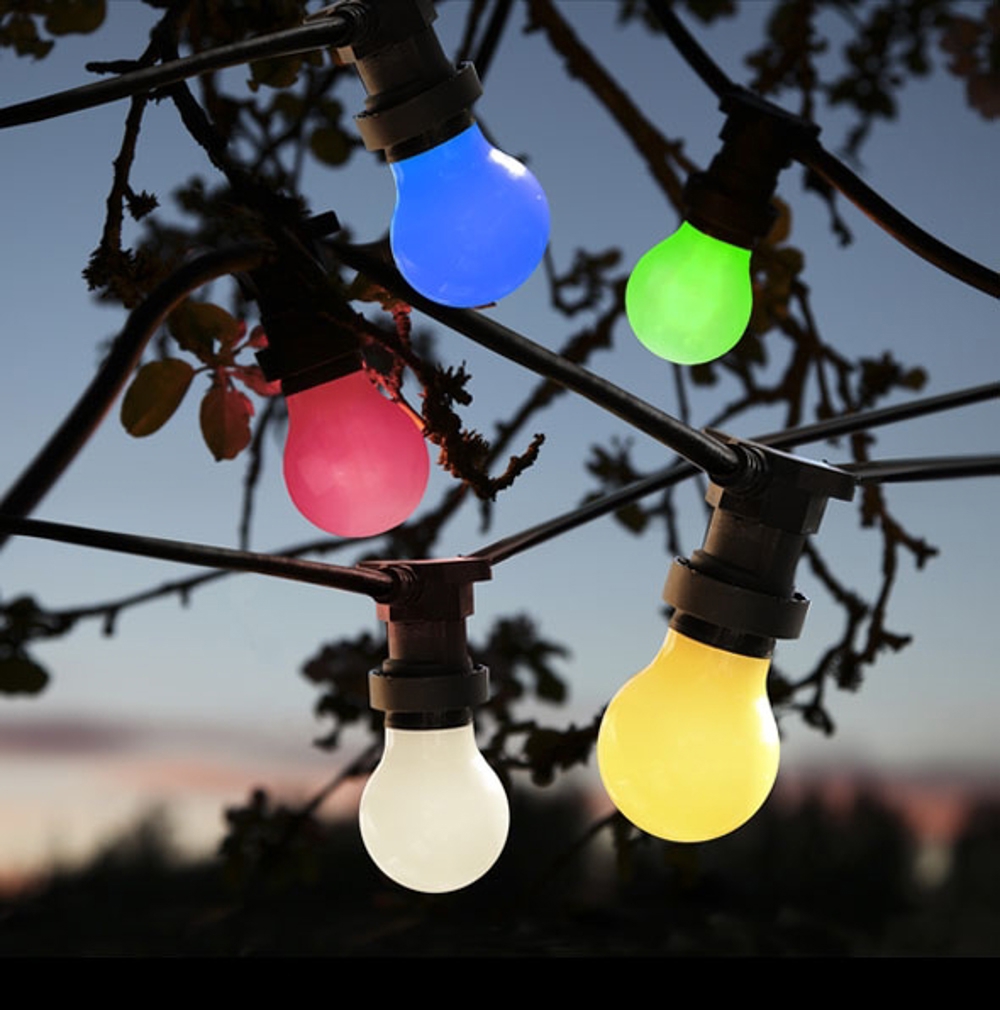 Idealny łańcuch świetlny w stylu retro. Czarny łańcuch świetlny do dużych żarówek - wybierz je z kolorem lub bez i stwórz przytulną atmosferę na przyjęcia w ogrodzie przez cały rok. Używaj ich wewnątrz lub na zewnątrz, np. jako lampy zewnętrzne na taras.