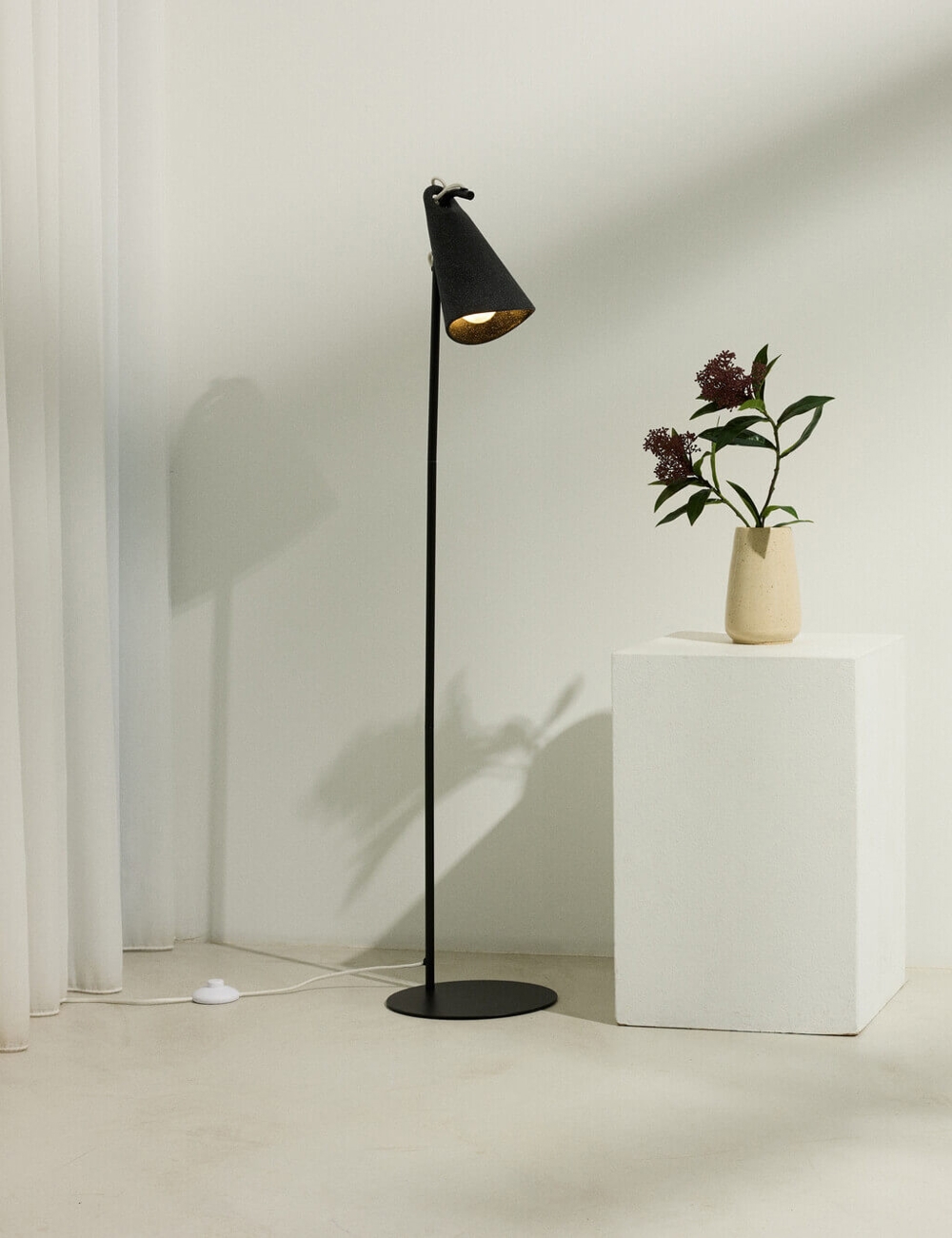 Ponadczasowa lampa podłogowa Decor Bell w kolorze czarnym wykonana ze stali z kloszem z recyklingowanego polietylenu to doskonały wybór jako oświetlenie do czytania przy fotelu w salonie. Pozycja klosza może być zmieniana. Lampę podłogową można z powodzeniem łączyć z innymi lampami z serii Decor Bell, aby stworzyć spójność w aranżacji wnętrza.