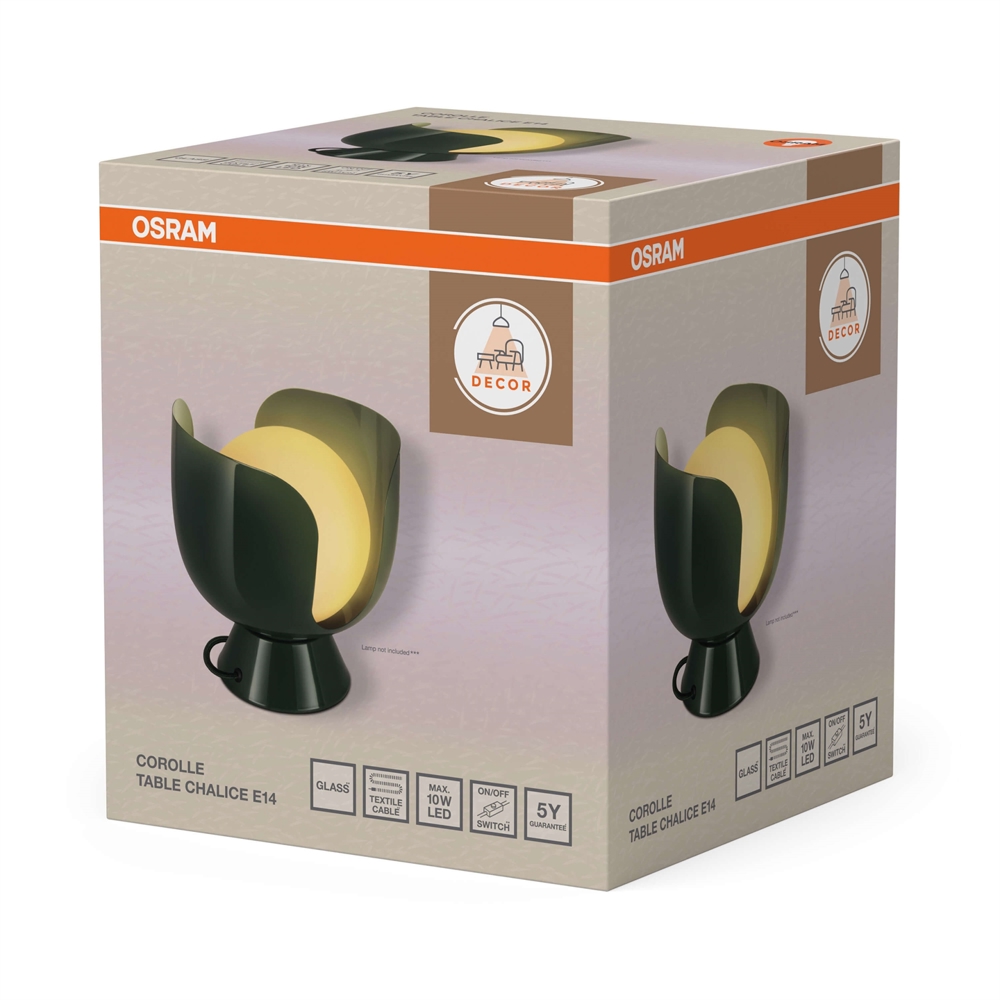 Kinkiet Decor Corolle ze stali i szkła to wyrafinowany dodatek do wnętrza dzięki swojej przyciągającej wzrok barwie. Elegancki design w stylu retro można z powodzeniem łączyć z innymi lampami z serii Decor Corolle, aby stworzyć spójną aranżację wnętrza. Idealny wybór jako oświetlenie do przedpokoju, korytarza i klatki schodowej lub do salonu i sypialni.