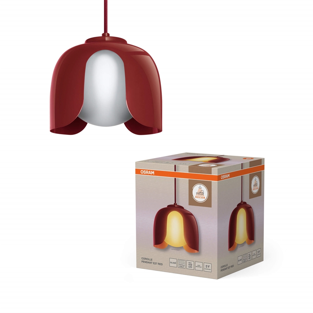 Lampa wisząca Decor Corolle ze stali i szkła to wyrafinowany dodatek do wnętrza dzięki swojemu przyciągającemu wzrok kolorowi. Elegancki design w stylu retro można z powodzeniem łączyć z innymi lampami z serii Decor Corolle, aby stworzyć spójność w aranżacji wnętrza. Idealny wybór jako oświetlenie do przedpokoju, korytarza i schodów lub do kuchni, salonu i sypialni.