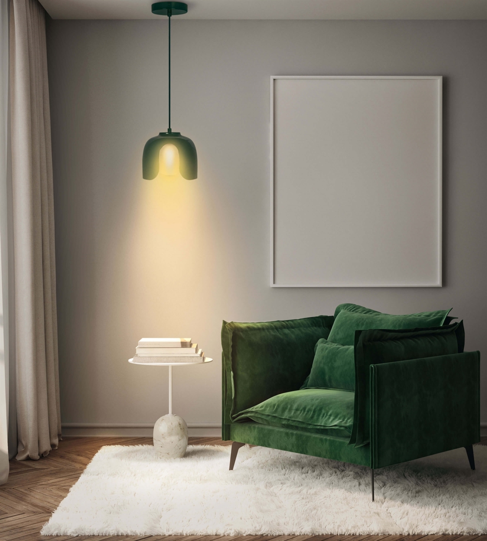 Lampa wisząca Decor Corolle ze stali i szkła to wyrafinowany dodatek do wnętrza dzięki swojemu przyciągającemu wzrok kolorowi. Elegancki design w stylu retro można z powodzeniem łączyć z innymi lampami z serii Decor Corolle, aby stworzyć spójność w aranżacji wnętrza. Idealny wybór jako oświetlenie do przedpokoju, korytarza i schodów lub do kuchni, salonu i sypialni.
