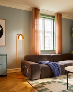 Lampa podłogowa dostępna jest w kilku kolorach z dopasowanym przewodem tekstylnym.