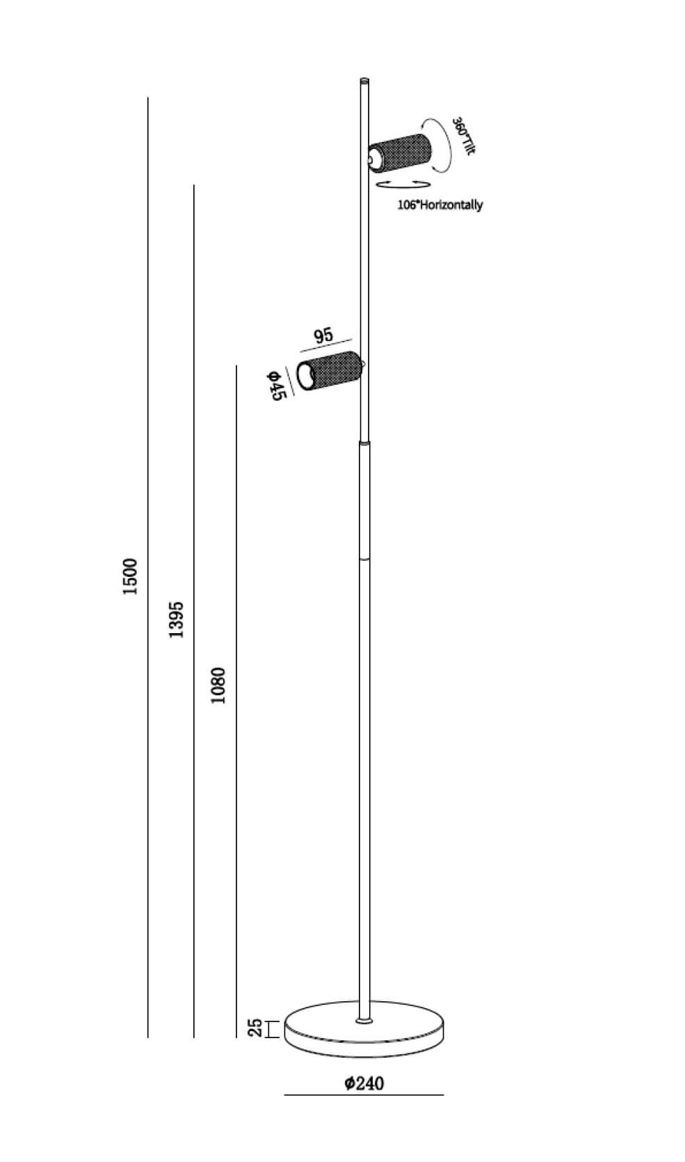 Wymiary: Wysokość 150 cm, podstawa: Ø25 cm