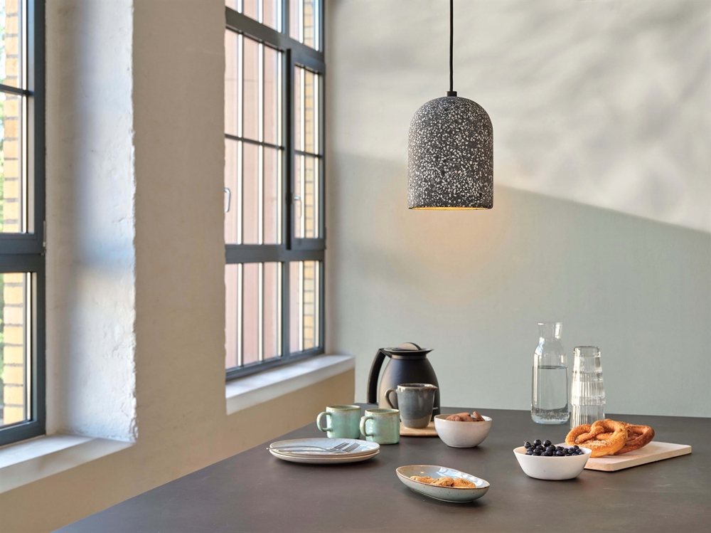 Pendel Decor Pill z metalu i terrazzo to doskonały wybór jako lampa kuchenna lub oświetlenie nad stołem, pięknie prezentuje się samodzielnie lub w grupie. Stylowa lampa jest również dobrym wyborem do przedpokoju lub klatki schodowej i jest wyposażona w oprawkę E27, co umożliwia wybór energooszczędnego źródła światła LED o różnych mocach.