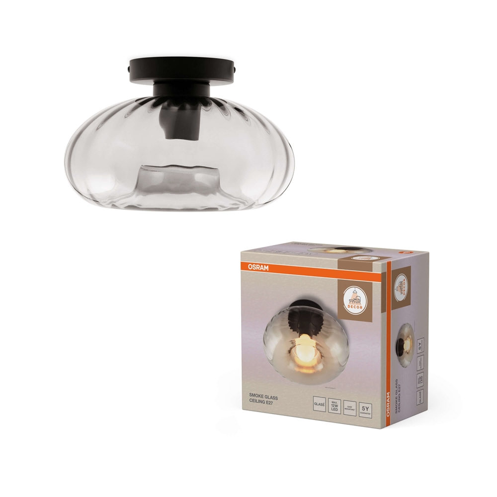 Osram Decor Smoke Glass kinkiet/plafon z przydymionym kloszem i czarną podstawą