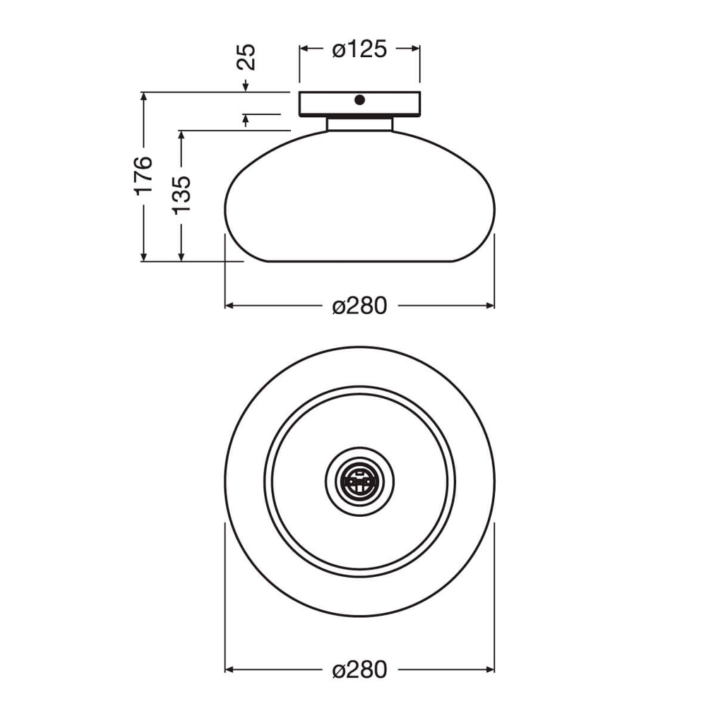Wymiary: Ø28 x H17,6 cm, podstawa Ø12,5 cm