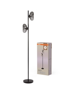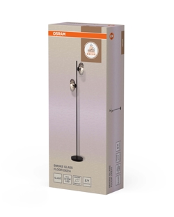Osram Decor Smoke Glass lampa podłogowa z przydymionym kloszem szklanym i czarną podstawą