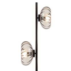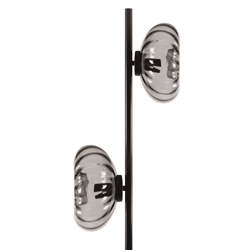 Lampa posiada dwa klosze i jest idealna do przedpokoju lub przy sofie czy fotelu w salonie. Czarna stalowa podstawa i stojak podkreślają stylowy wygląd lampy i ułatwiają jej integrację zarówno w nowoczesnych, jak i klasycznych wnętrzach. Dwa gniazda E14 dają dużą swobodę w wyborze jasności i temperatury barwowej źródeł światła.