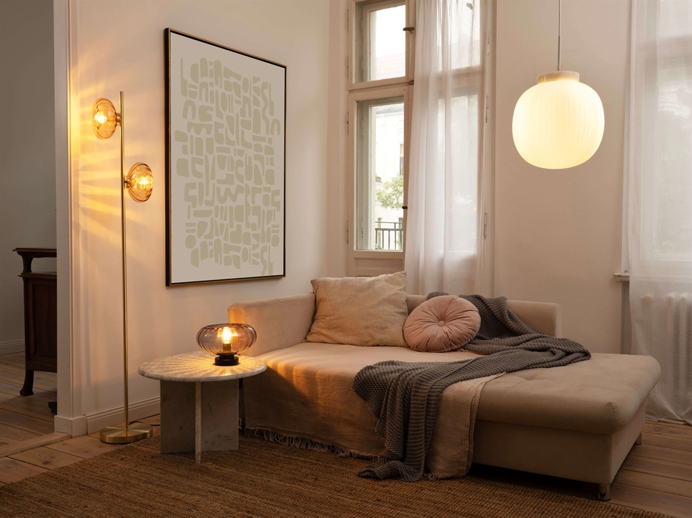 Decor Smoke Glass dostępna jest jako lampa wisząca, lampa stołowa i lampa podłogowa oraz jako kinkiet/plafon. Stylowe lampy z tej serii zostały stworzone z myślą o designie, elastyczności i atmosferze, i można je z powodzeniem łączyć, aby stworzyć spójność w aranżacji wnętrza.