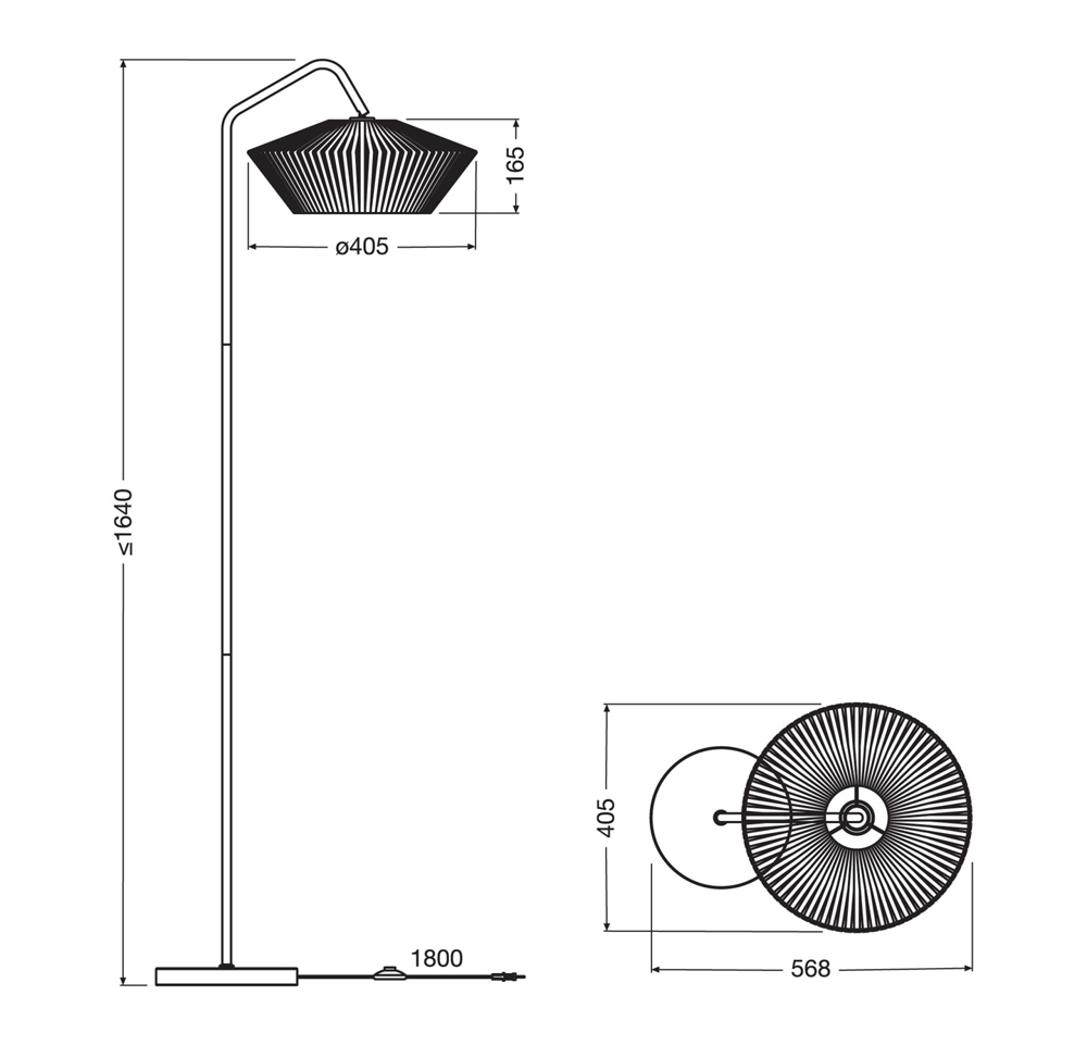 Mierzenia: H164 x D56,8 cm, abażur: Ø40,5 x H16,5 cm