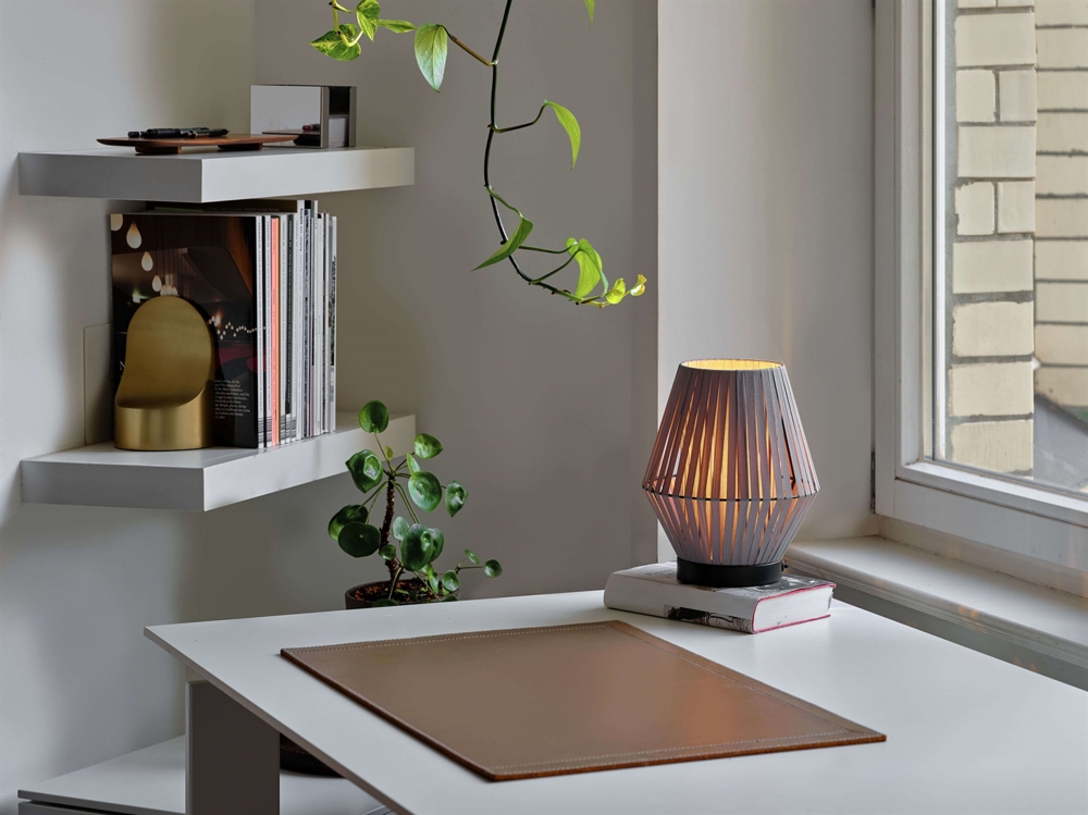 Lampę stołową można z powodzeniem łączyć z innymi lampami z serii Decor Stripes, aby stworzyć spójność w aranżacji wnętrza. Seria lamp dostępna jest w kolorze beżowym lub ciemnoszarym.