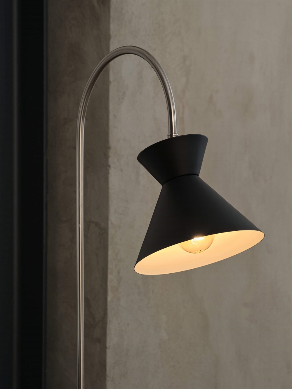 Minimalistyczna lampa podłogowa Decor Waist o pięknych geometrycznych kształtach doskonale pasuje do wielu wnętrz. Idealny wybór jako światło do czytania przy fotelu w salonie. Lampa wykonana jest ze stali i zapewnia jednolite oświetlenie. Regulowany klosz umożliwia zmianę kierunku światła.