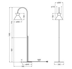 Mierzenia: H140 x B24 x D45 cm, klosz: Ø20 x H16,2 cm