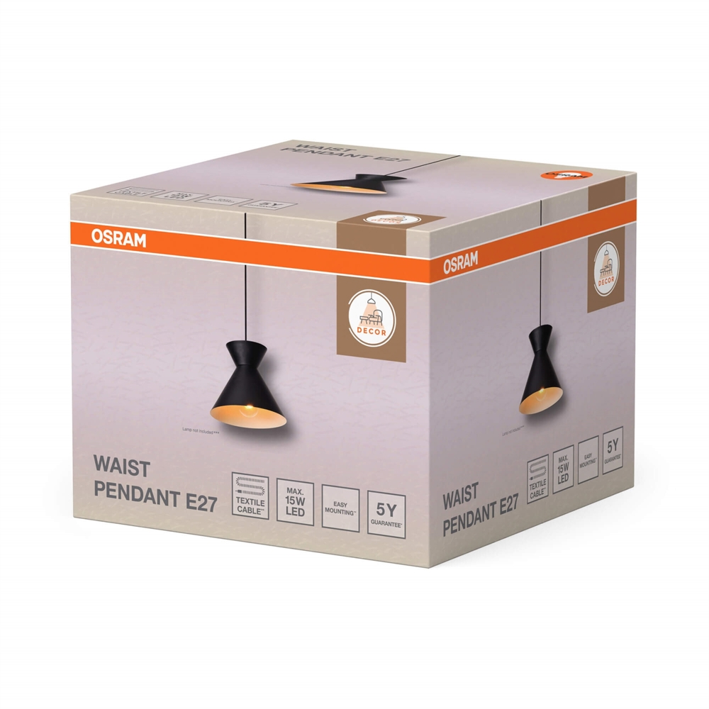 Pendel wykonany jest ze stali i zapewnia jednolite światło. Regulowany klosz pozwala na zmianę kierunku światła. Lampę można z powodzeniem łączyć z innymi lampami z serii Decor Waist, aby stworzyć spójną aranżację wnętrza.