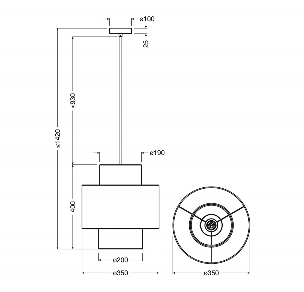 Maksymalna wysokość od sufitu: 142 cm