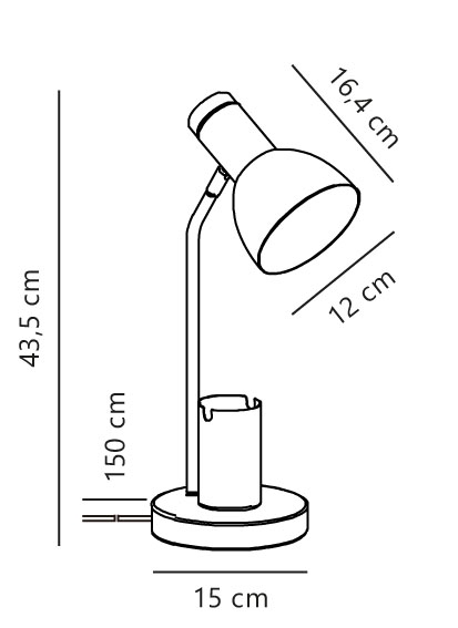 Wymiary: H43,5, klosz: Ø12 x H16,4 cm, podstawa: Ø15 cm