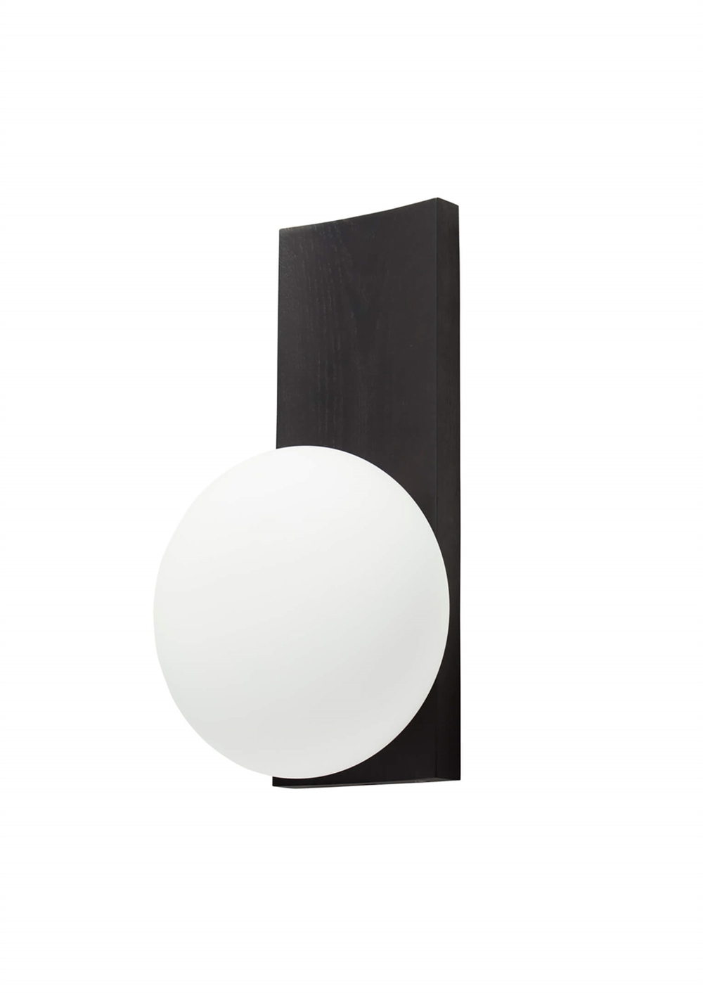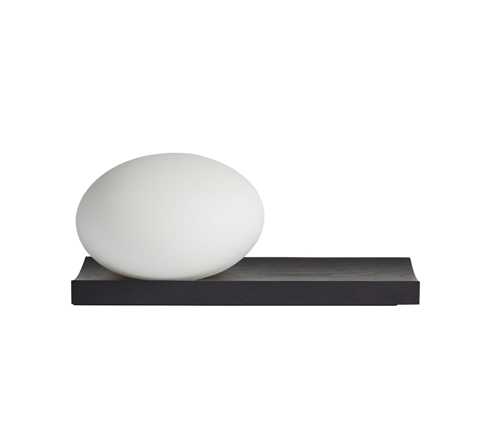 Projekt lampy inspirowany jest klasycznymi latarniami i składa się z opalowego, okrągłego klosza z podstawą z czarnego malowanego jesionu.
