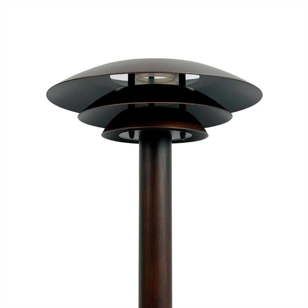 Słupek oświetleniowy DL25 z wykończeniem w antycznej szczotkowanej miedzi to klasyczna i stylowa lampa zewnętrzna, która świetnie sprawdzi się przy podjeździe lub w ogrodzie. Klosze wykonano z aluminium z piękną powłoką w antycznym, miedzianym kolorze, natomiast podstawa jest ze stali nierdzewnej z powłoką. Dobór materiałów zapewnia lampie długą trwałość. Ma solidną powierzchnię i eleganckie wykończenie.