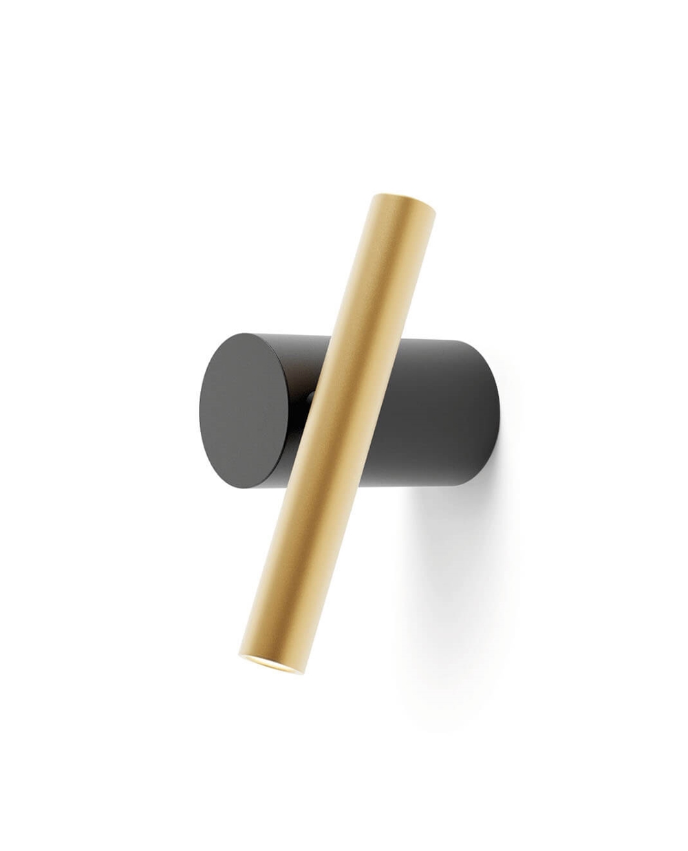 Kinkiet i lampa sufitowa Doi składa się z eleganckiej podstawy i reflektora LED w formie cylindrycznego klosza o długości 18 cm. Podstawa i klosz są połączone mechanicznym przegubem, dzięki czemu światło można obracać i kierować zarówno w górę, jak i w dół.