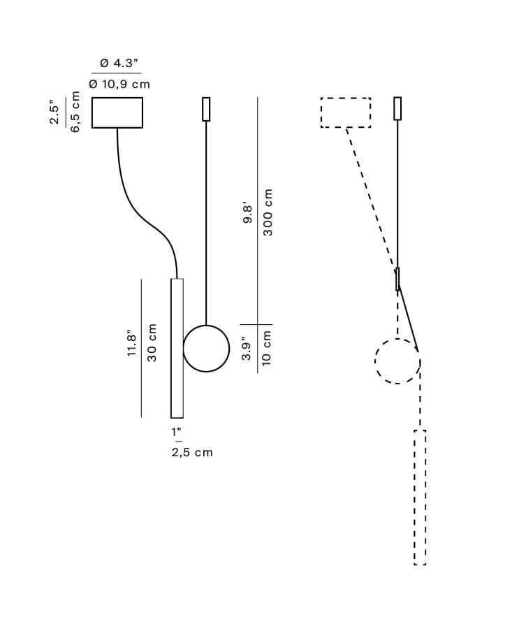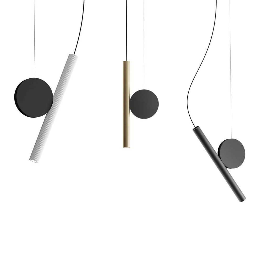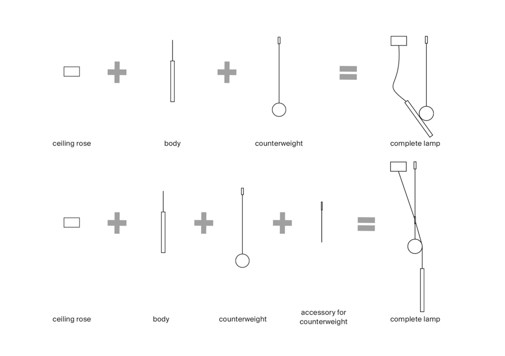 Ta przeciwwaga w formie dysku jest akcesorium do lampy Doi wiszącej. Dekoracyjna lampa wewnętrzna może przybierać różne konfiguracje dzięki grawitacji i magnetyzmowi między cylindrem klosza lampy wiszącej a przeciwwagą lub z dodatkiem akcesorium "wahadło".