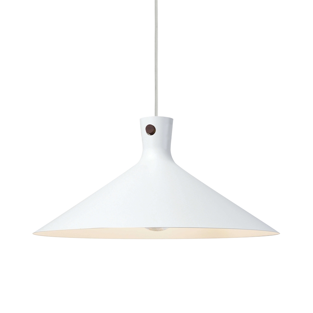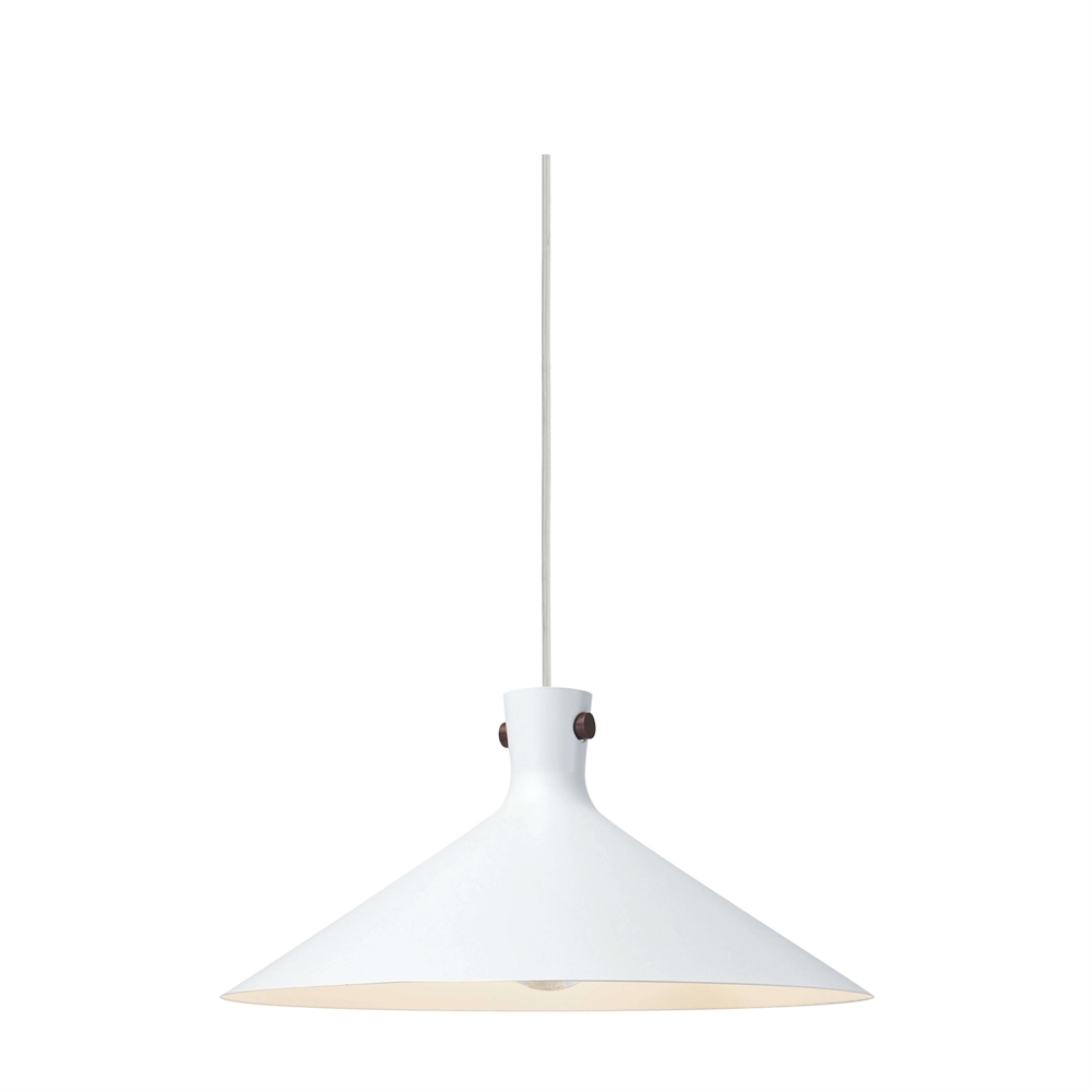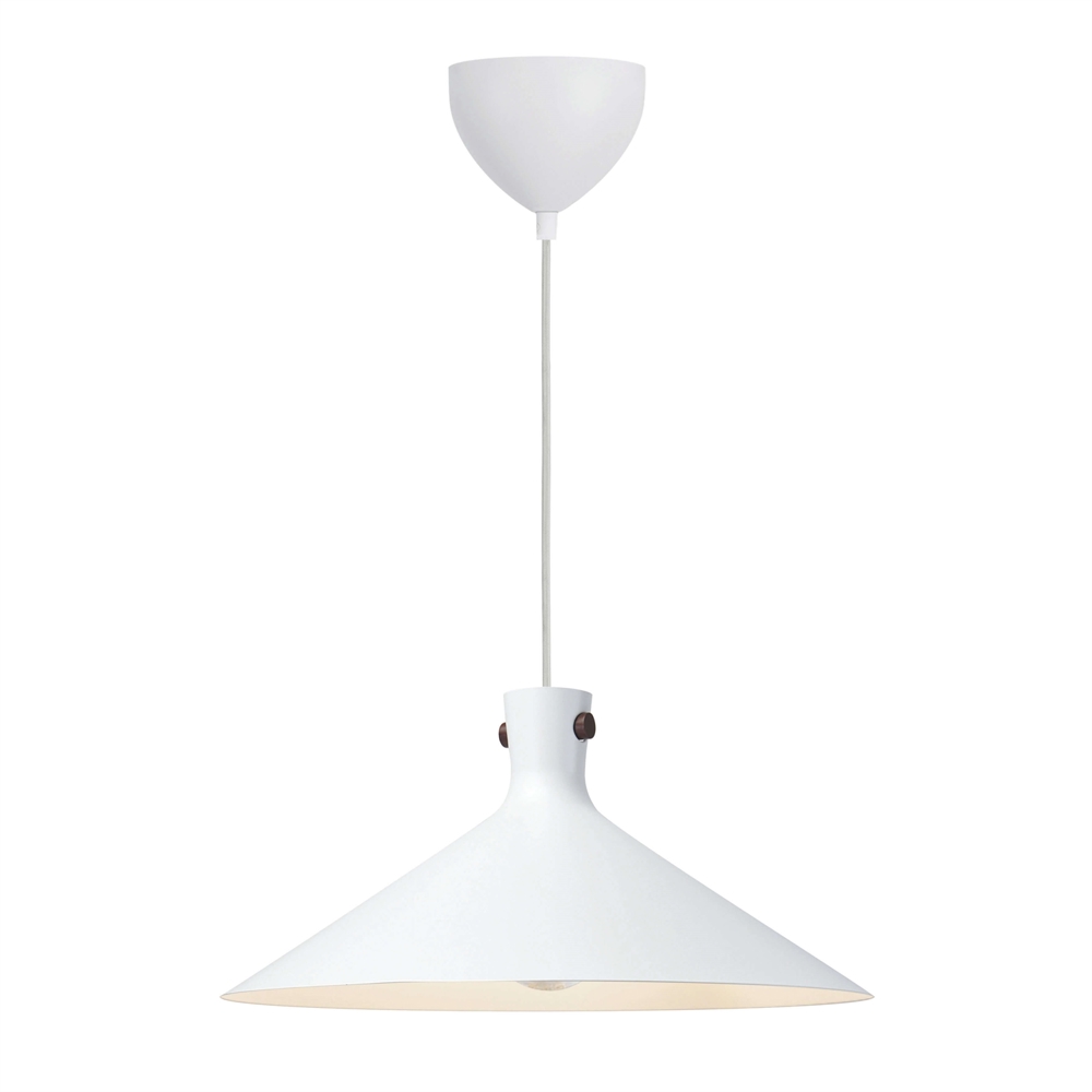 Lampa wisząca Dorina jest wykonana z eleganckiego połączenia metalu i drewna. Projekt to ponadczasowy skandynawski minimalizm z białym, stożkowym kloszem z metalu i detalem z ciemno bejcowanego drewna brzozowego. Dorina to doskonały wybór jako oświetlenie nad stół jadalny i będzie pasować do wielu różnych aranżacji.