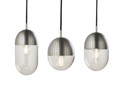 Lampa Dot składa się z szklanego klosza, którego górna część jest pokryta perforowaną osłoną. Małe otwory w górnej części klosza tworzą delikatny i spokojny efekt, ponieważ tylko część światła może przez nie przenikać. Lampa została zaprojektowana, aby stworzyć przytulną atmosferę, dlatego idealnie nadaje się do zawieszenia w rogu salonu.
