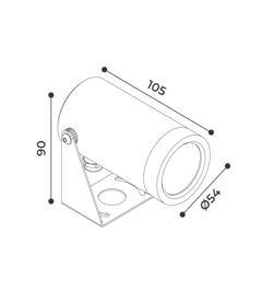 DX 54mm spot 26°, czarny - można używać na ścianie, suficie oraz ziemi/podłodze.