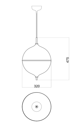 Pendel dostępny jest w dwóch rozmiarach z białym lub czarnym przewodem. W serii lamp znajdują się również kinkiety.