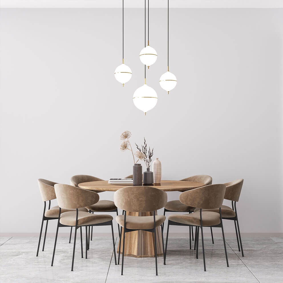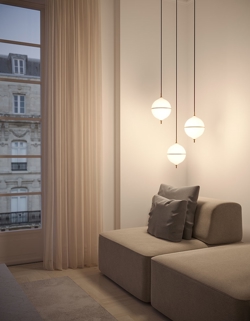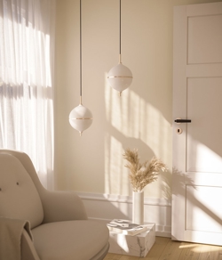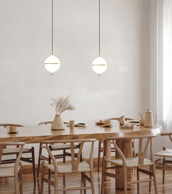 Projekt jest ręcznie wykonany z mosiądzu i opalowego szkła, stanowiąc ponadczasowe połączenie skandynawskiego minimalizmu i nowoczesnej elegancji. Czarny przewód materiałowy w tej wersji dodaje wyraźny kontrast do jasnego wyrazu pendla. Idealny wybór do mniejszych pomieszczeń lub jako oświetlenie w grupie nad stołem jadalnym.