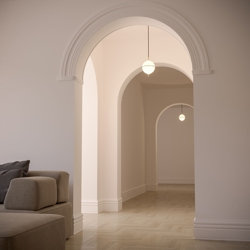 Pendel Eternal Moonlight jest inspirowany tajemniczością księżyca i dodaje wyrafinowanego akcentu do wnętrza. Kulisty klosz z dmuchanego opalowego szkła rozprasza miękkie światło i jest podzielony subtelnym mosiężnym paskiem, który symbolizuje półksiężyc.