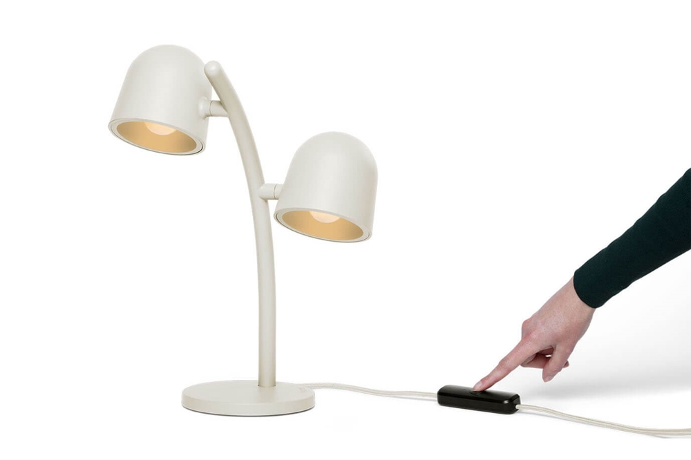 Lampa podłogowa może być ściemniana przez obracanie przełącznika.