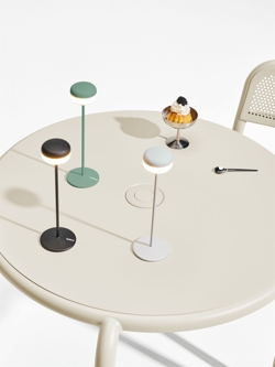 Cheerio lampa stołowa dodaje dodatkowy akcent przytulności, gdy spotykasz się z przyjaciółmi lub rodziną. Lampa na baterie jest ładowalna i dzięki bezprzewodowej konstrukcji można ją używać wszędzie, zarówno wewnątrz, jak i na zewnątrz. Dzięki ciężkiej stalowej podstawie Cheerio stoi stabilnie i mocno. Użyj na przykład lampy LED na swoim stole jadalnym, kuchennym, kawowym, nocnym lub na zewnątrz na balkonie czy w ogrodzie.