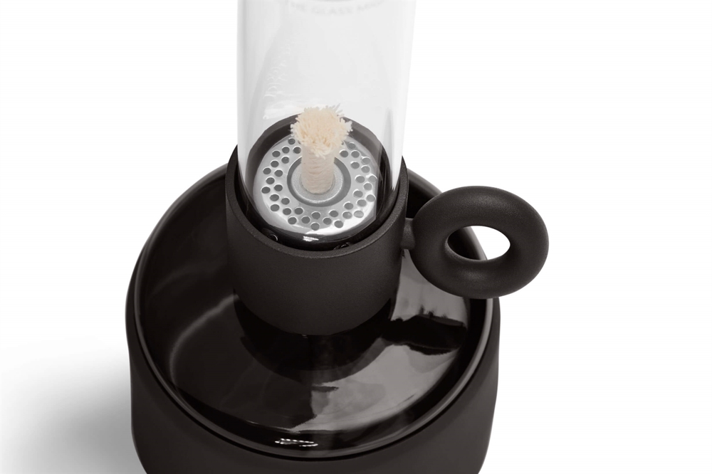 Flamtastique XS to elegancka lampa olejowa do użytku wewnętrznego. Lampa inspirowana jest tradycyjną lampą olejową i składa się z smukłej szklanej rury do osłony płomienia oraz podstawy, która służy jako zbiornik na olej. Przezroczysta część podstawy pozwala zawsze zobaczyć, ile oleju lampowego pozostało. Knot jest wysuwany za pomocą uchwytu z boku lampy.