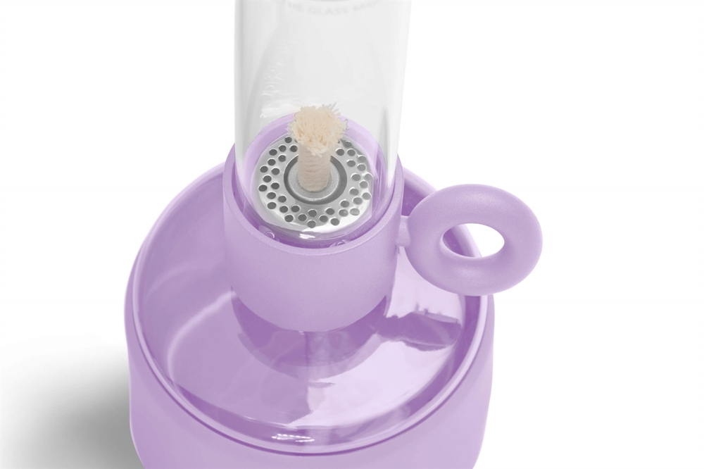 Flamtastique XS to elegancka lampa olejowa do użytku wewnętrznego. Lampa inspirowana jest tradycyjną lampą olejową i składa się z smukłej szklanej rury osłaniającej płomień oraz podstawy, która pełni funkcję zbiornika na olej. Przezroczysta część podstawy pozwala zawsze widzieć, ile oleju lampowego pozostało. Knot jest wysuwany za pomocą uchwytu z boku lampy.