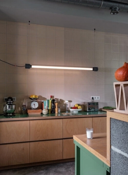 Tjoep lampa ścienna i lampa sufitowa dostępna jest w małym (50 cm) lub dużym (150 cm) rozmiarze oraz w kilku pięknych kolorach.