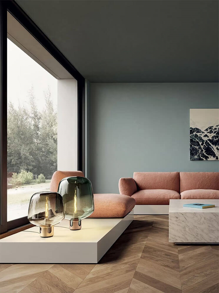 Umieść lampę na przykład na stoliku bocznym przy sofie lub bezpośrednio na podłodze, aby uzyskać nastrojowe oświetlenie z wyrazistym designem. Dwa rozmiary i różne wykończenia sprawiają, że warto łączyć lampy i tworzyć unikalne aranżacje zarówno w domu, jak i w biurach oraz sklepach.