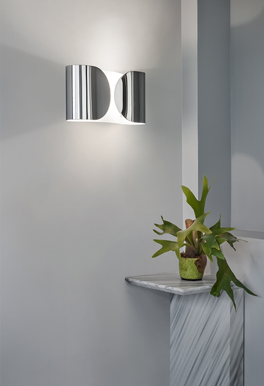 Lampa Foglio dostępna jest w 3 wariantach kolorystycznych: białym, czarnym i chromowanym.