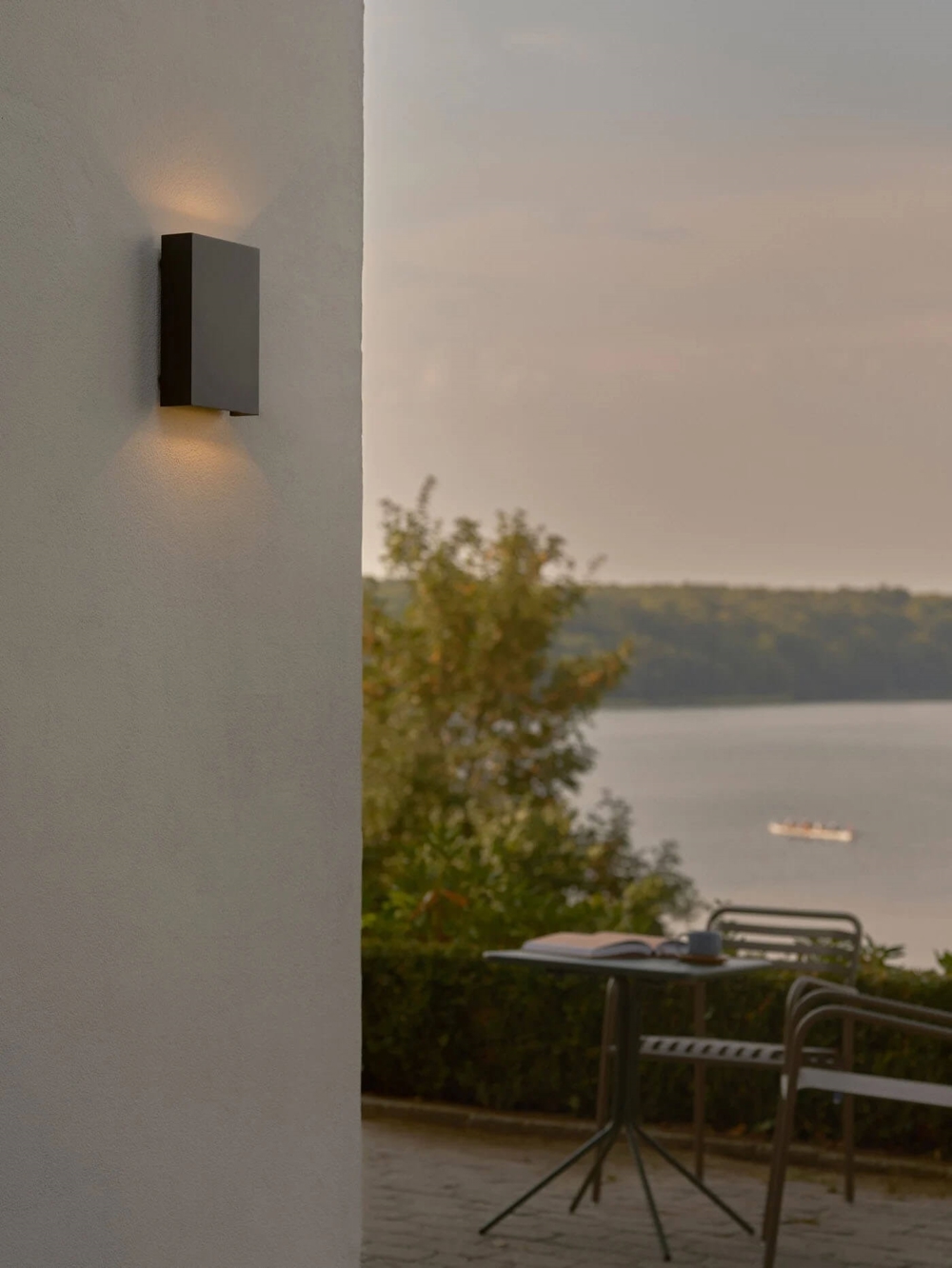 Fold daje białe i jasne światło i jest wykonana z trwałego materiału, który jest odporny na trudne warunki pogodowe. Dlatego zawieś lampę na zewnątrz i pozwól jej świecić w ciemne godziny. Lampa ścienna może również wisieć wewnątrz, na przykład w łazience lub korytarzu.