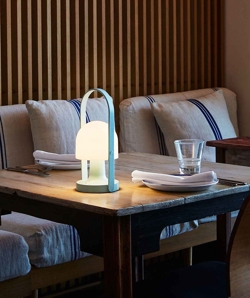 Lampa FollowMe to sprytna mała lampa stołowa, która jest bardzo użyteczna, ponieważ można ją używać zarówno wewnątrz, jak i na zewnątrz. Lampa ma wbudowane LED i jest ładowana przez USB, co oznacza, że można ją używać w miejscach bez gniazdka elektrycznego.