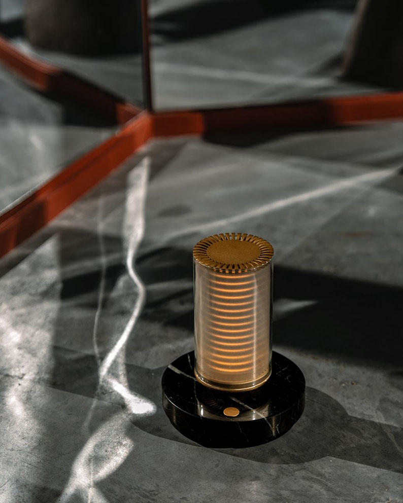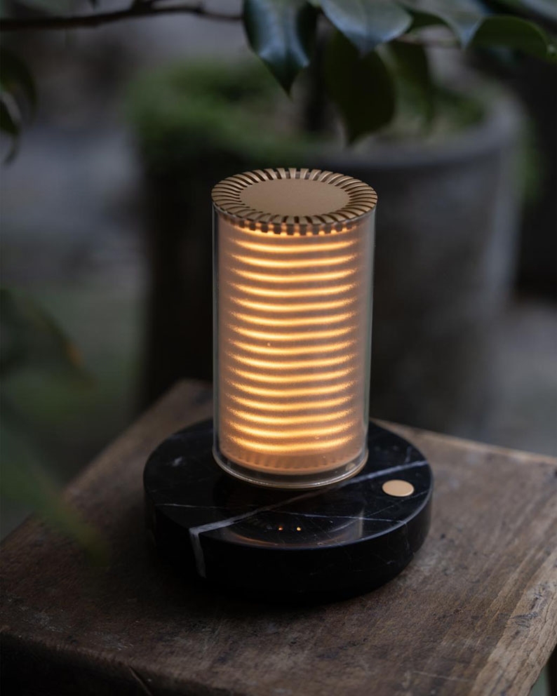 Ta ładowalna lampa bateryjna Frechin A ma elegancki i ponadczasowy design, który doskonale wpasuje się w wiele wnętrz. Podstawa wykonana jest z czarnego marmuru i aluminium, a klosz składa się z rurki z borokrzemianowego szkła, która pięknie świeci po włączeniu lampy.