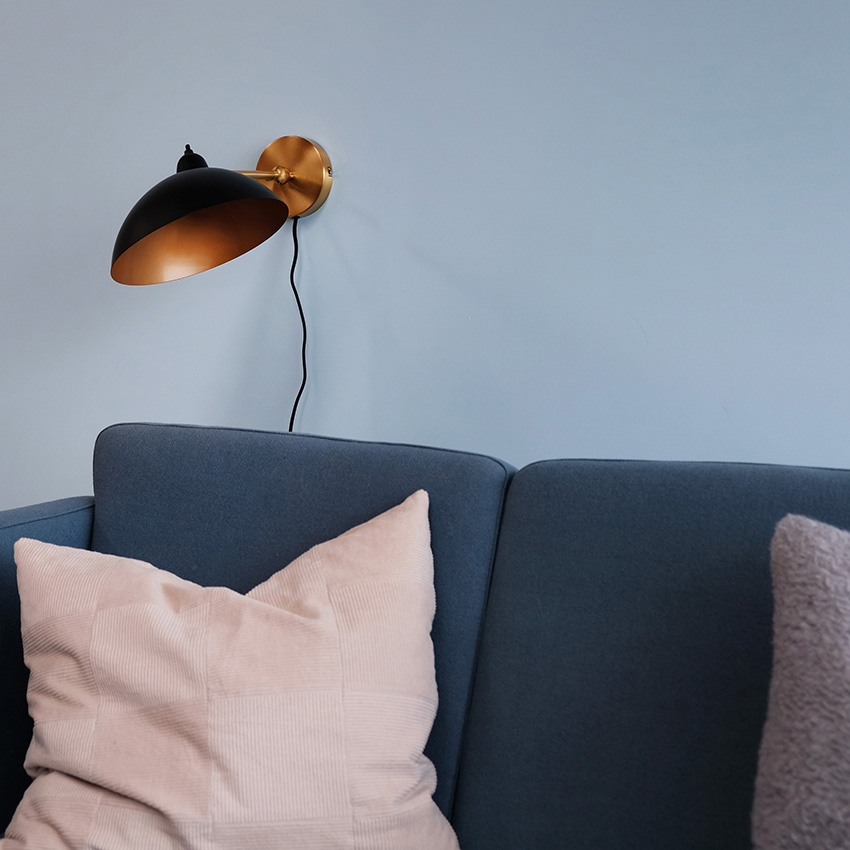 Futura to piękny kinkiet, którego nazwa pochodzi od klosza lampy o futurystycznym wyglądzie. Lampa ma czarną zewnętrzną część, a wnętrze klosza jest z antycznego mosiądzu. Tworzy to ciepłą i przyjemną atmosferę w domu. Dodatkowo, włącznik znajduje się na kloszu, który można łatwo przechylać i obracać, aby skierować światło według własnych potrzeb.