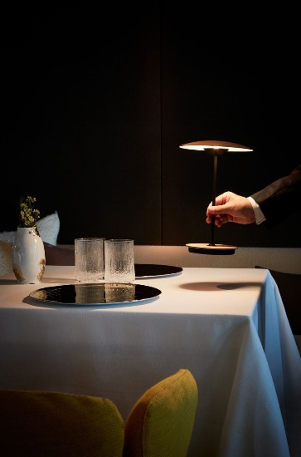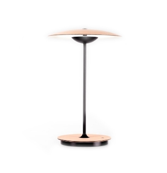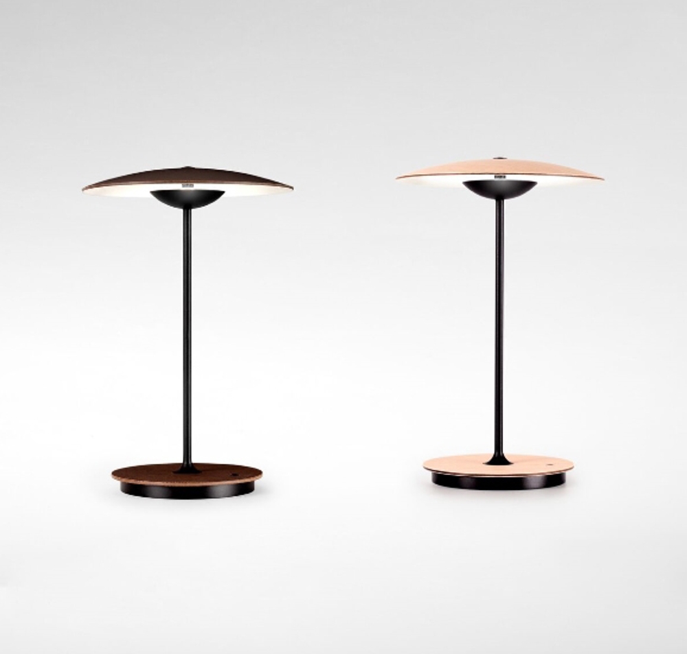 Ginger 20 M to przenośna lampa stołowa z kloszem z drewna o grubości zaledwie 4 mm. Stelaż wykonany jest z aluminium, a wbudowane źródło światła LED o mocy 3,2 wata można ustawić na 3 poziomy jasności.
