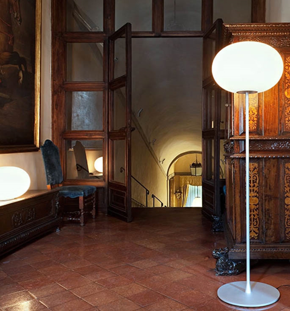 Glo-ball to popularna i stylowa seria lamp ściennych i sufitowych w różnych rozmiarach, a także lamp wiszących, stołowych i podłogowych.