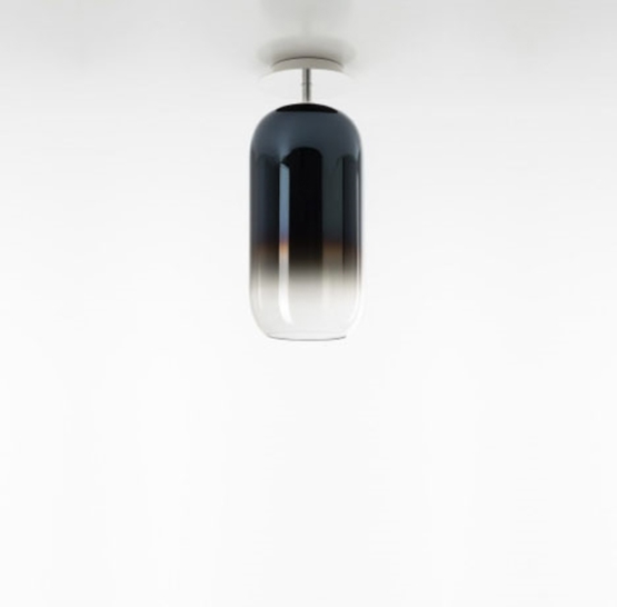 Podstawowa forma lampy Gople podkreśla piękno szkła, które jest ręcznie wykonane zgodnie ze starą wenecką techniką. Tutaj białe szkło przekształca się w szkło kryształowe poprzez połączenie obu podczas dmuchania - dzięki czemu każde szkło jest unikalne.