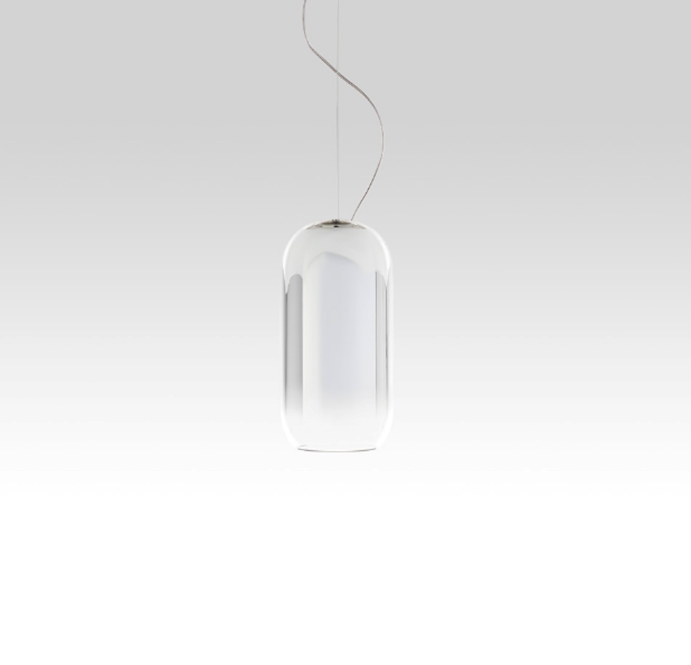 Podstawowy kształt lampy Gople podkreśla piękno szkła, które jest ręcznie wykonane zgodnie ze starą wenecką techniką. Tutaj białe szkło przekształca się w szkło kryształowe poprzez połączenie obu podczas dmuchania - dzięki czemu każde szkło jest unikalne.