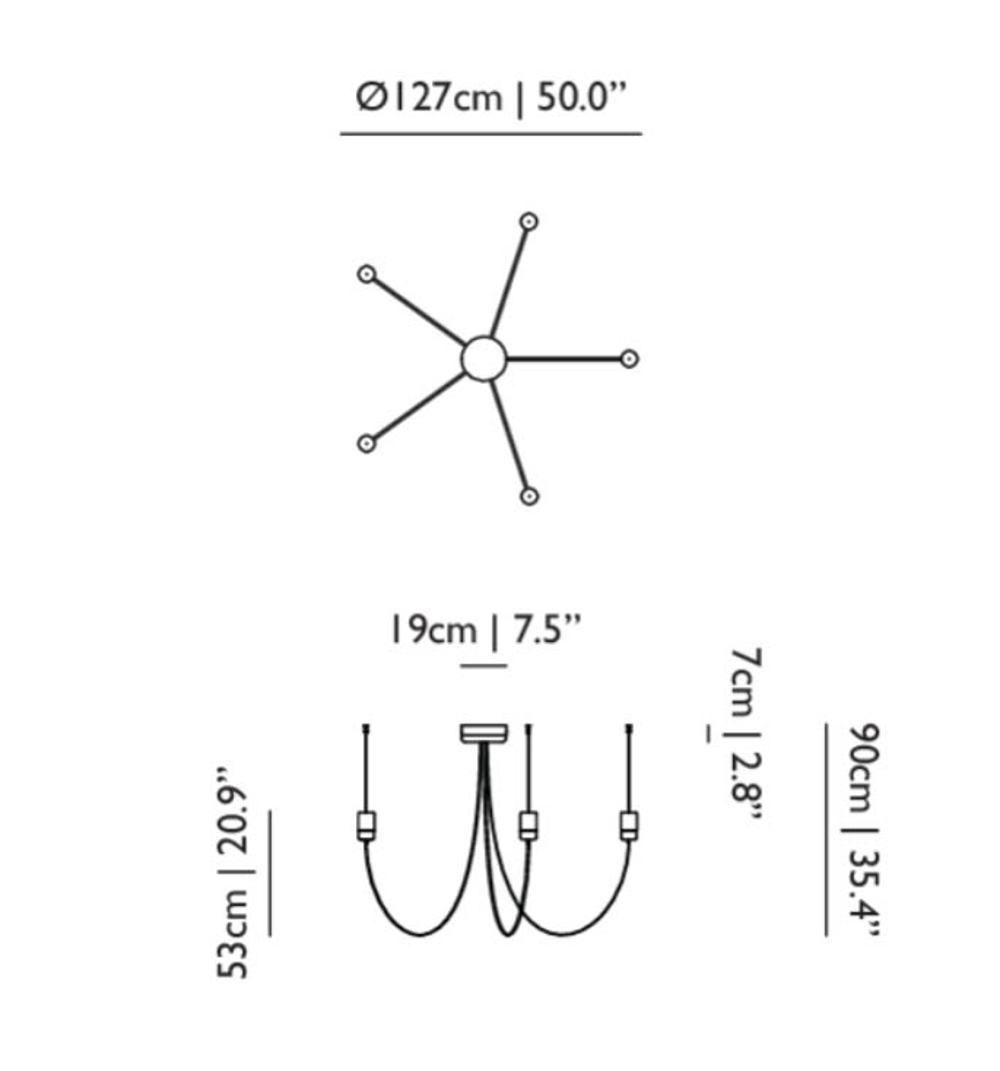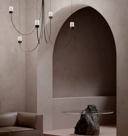 Na pierwszy rzut oka nie widać elastyczności lampy Gravity; dzięki giętkim ramionom żyrandola możesz samodzielnie określić średnicę, a tym samym to, jak światło rozchodzi się w pomieszczeniu.