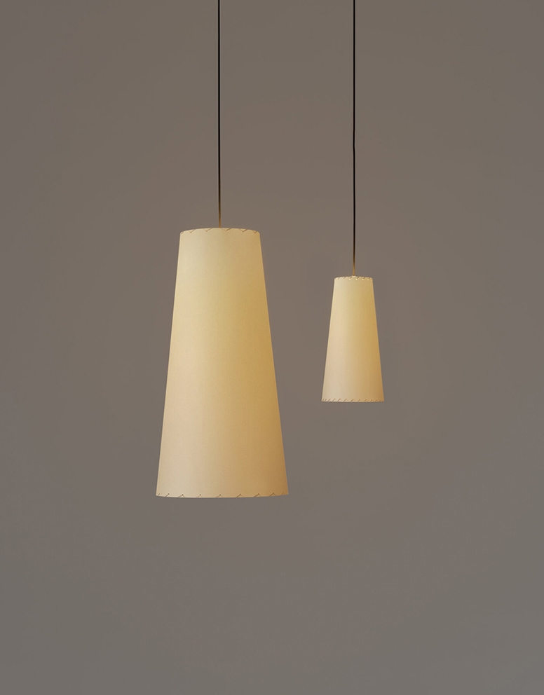 GT4 lampa wisząca z kloszem z pergaminu, czarnym przewodem i czarną podsufitką – zaprojektowana przez Gabriela Ordeig Cole (założyciela Santa & Cole)